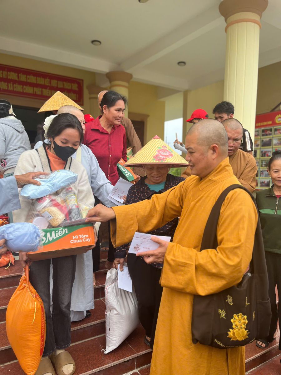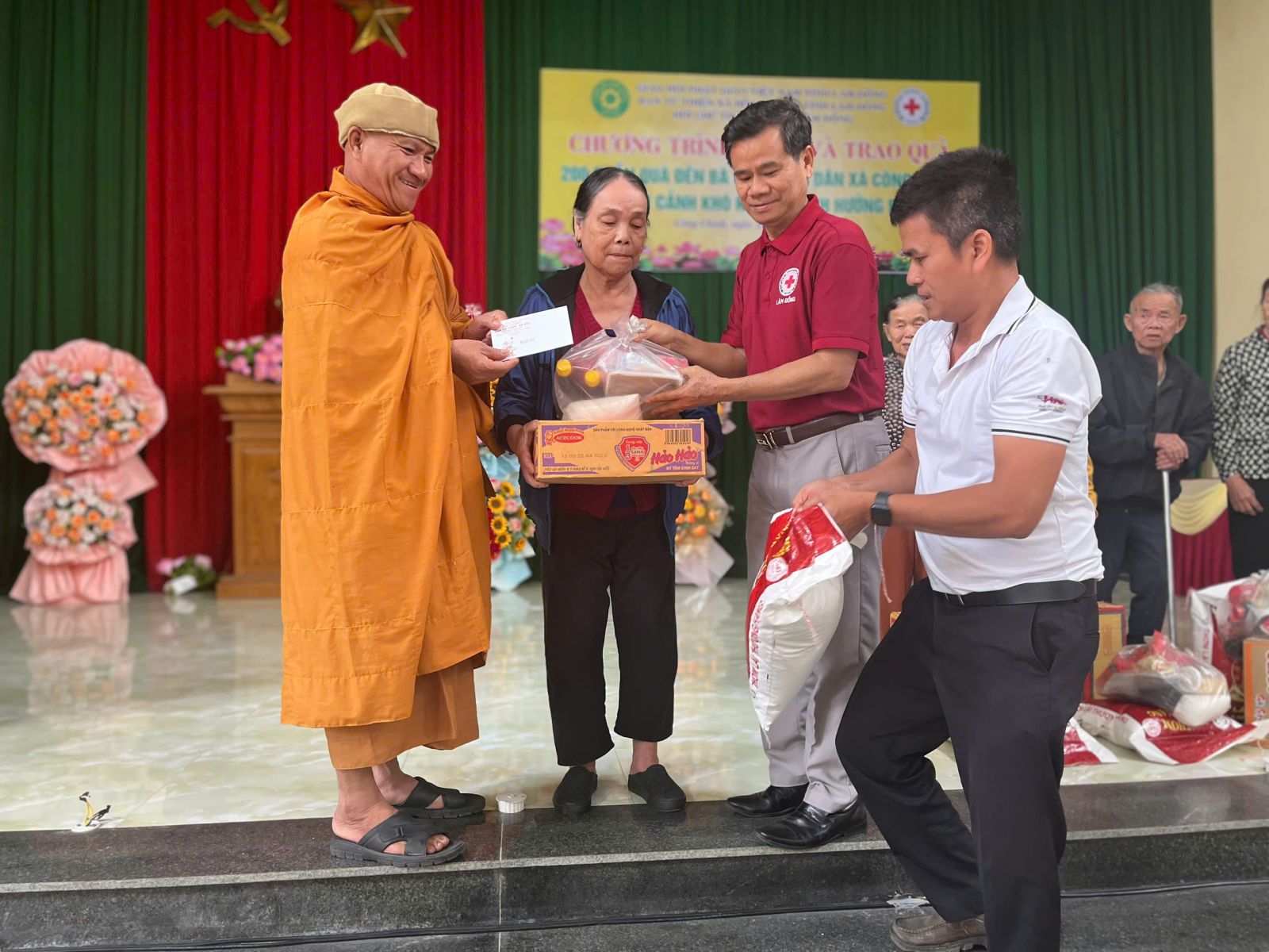 Tại xã Công Chính tỉnh Thanh Hóa chư tôn đức đã thăm hỏi và trao tặng 200 suất quà (mỗi suất gồm 500.000 nghìn đồng tiền mặt và các nhu yếu phẩm cần thiết trong sinh hoạt) tới các gia đình có hoàn cảnh khó khăn sau cơn bão lũ.