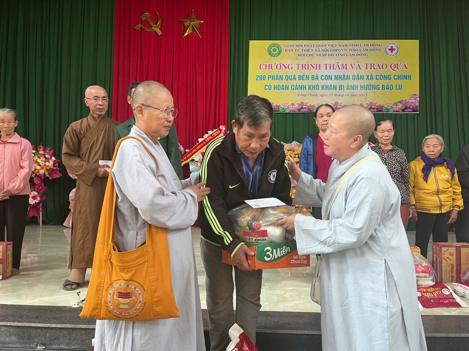 Những phần quà cả tấm lòng yêu thương, tinh thần nhân ái của Tăng Ni, Phật tử trên địa bàn tỉnh Lâm Đồng và quý Mạnh thường quân khắp nơi đồng long hướng về san sẻ tình người trong lúc khó khăn. Nhờ đó mà chúng ta thấy được tinh thần từ bi, cứu khổ cứu nạn của đạo Phật, đồng thời là minh chứng sinh động cho sự gắn kết giữa đạo pháp và dân tộc, đặc biệt trong những lúc người dân gặp thiên tai, hoạn nạn. Tình người gắn kết với nhau gần hơn vun đắp, lan tỏa – giúp bà con nơi vùng bão lũ thêm ấm lòng và tiếp tục vững bước trang trãi để sửa sang lại nhà cửa và tiếp tục duy trì đời sống thường nhật.