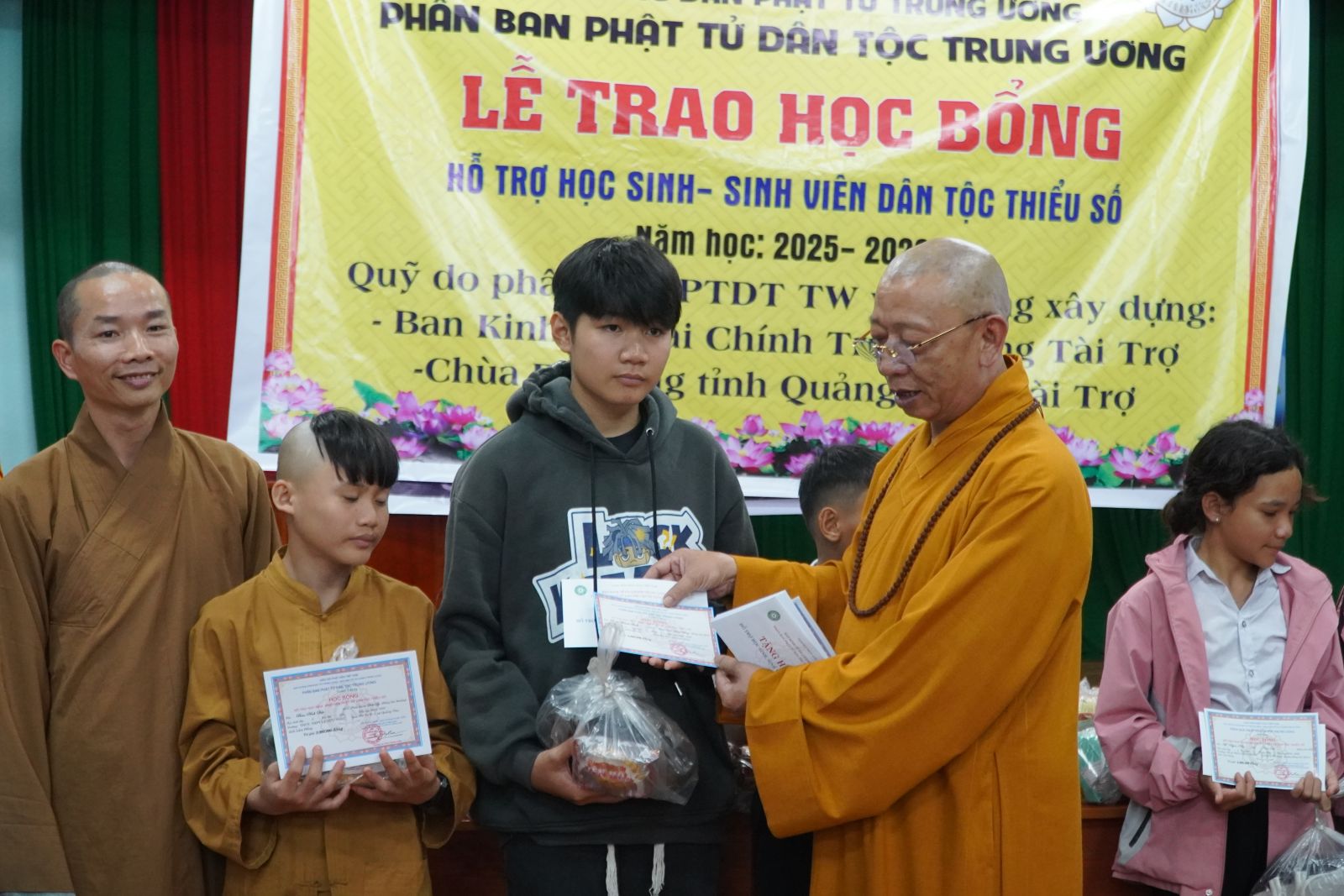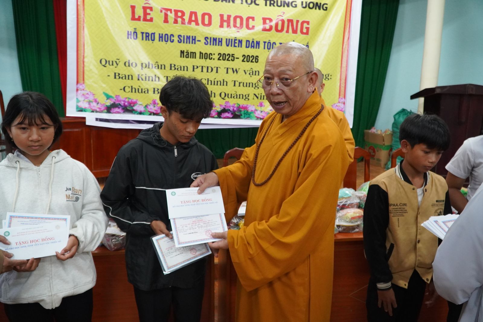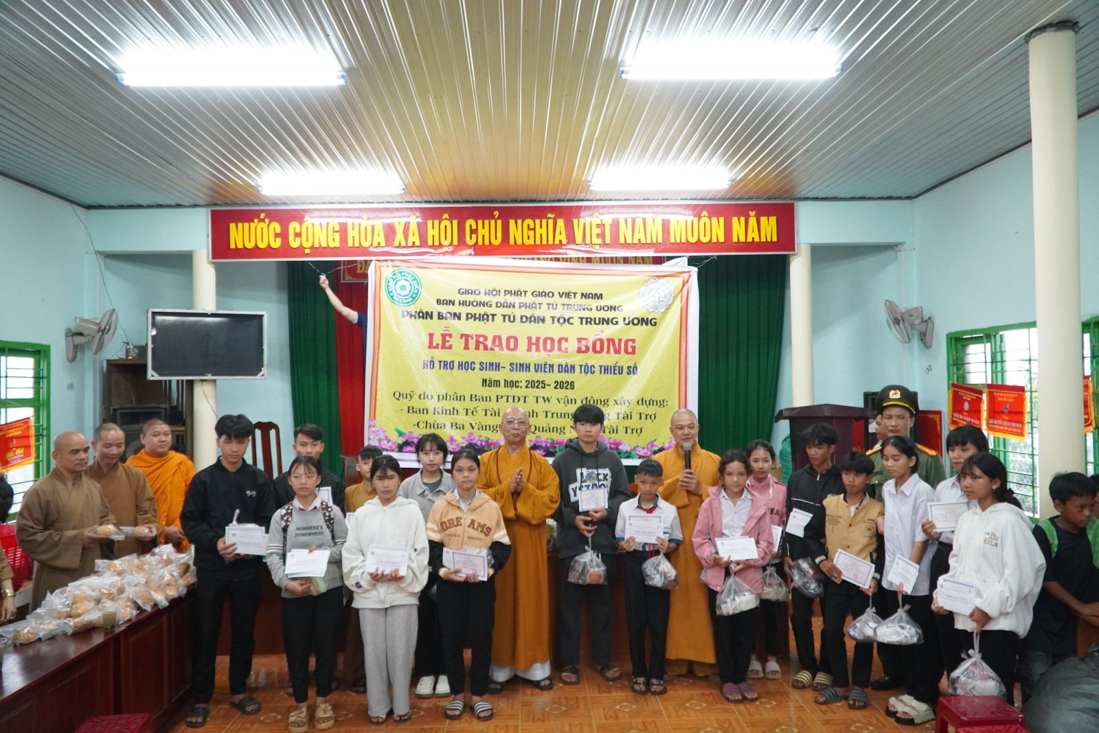 Chiều ngày 03/10/2025 (nhằm ngày 12/8 năm Ất Tỵ), tại hội trường TDP Ting We Đơm, phường Đông Gia Nghĩa, tỉnh Lâm Đồng, Phân ban Phật tử Dân tộc (PTDT) Trung ương đã phối hợp cùng ban HDPT tỉnh Lâm Đồng tổ chức lễ trao 20 suất bổng niên khóa 2025-2026 và tặng 200 phần quà Trung thu cho các em thiếu nhi đồng bào dân tộc thiểu số.