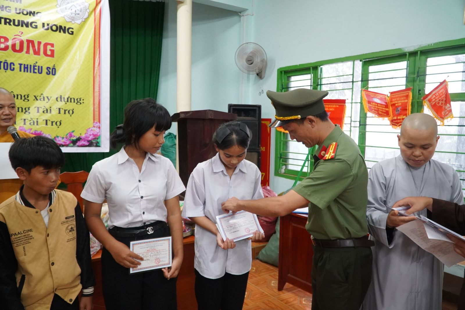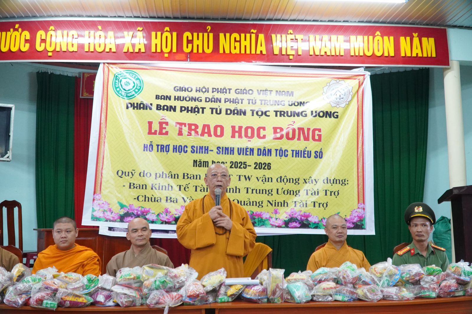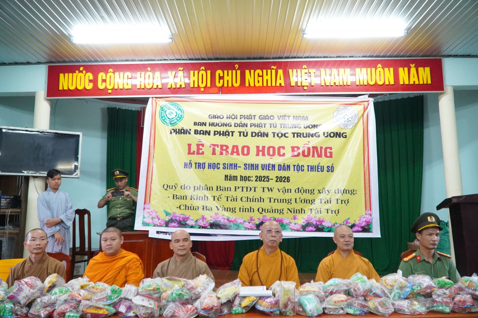 Chiều ngày 03/10/2025 (nhằm ngày 12/8 năm Ất Tỵ), tại hội trường TDP Ting We Đơm, phường Đông Gia Nghĩa, tỉnh Lâm Đồng, Phân ban Phật tử Dân tộc (PTDT) Trung ương đã phối hợp cùng ban HDPT tỉnh Lâm Đồng tổ chức lễ trao 20 suất bổng niên khóa 2025-2026 và tặng 200 phần quà Trung thu cho các em thiếu nhi đồng bào dân tộc thiểu số.