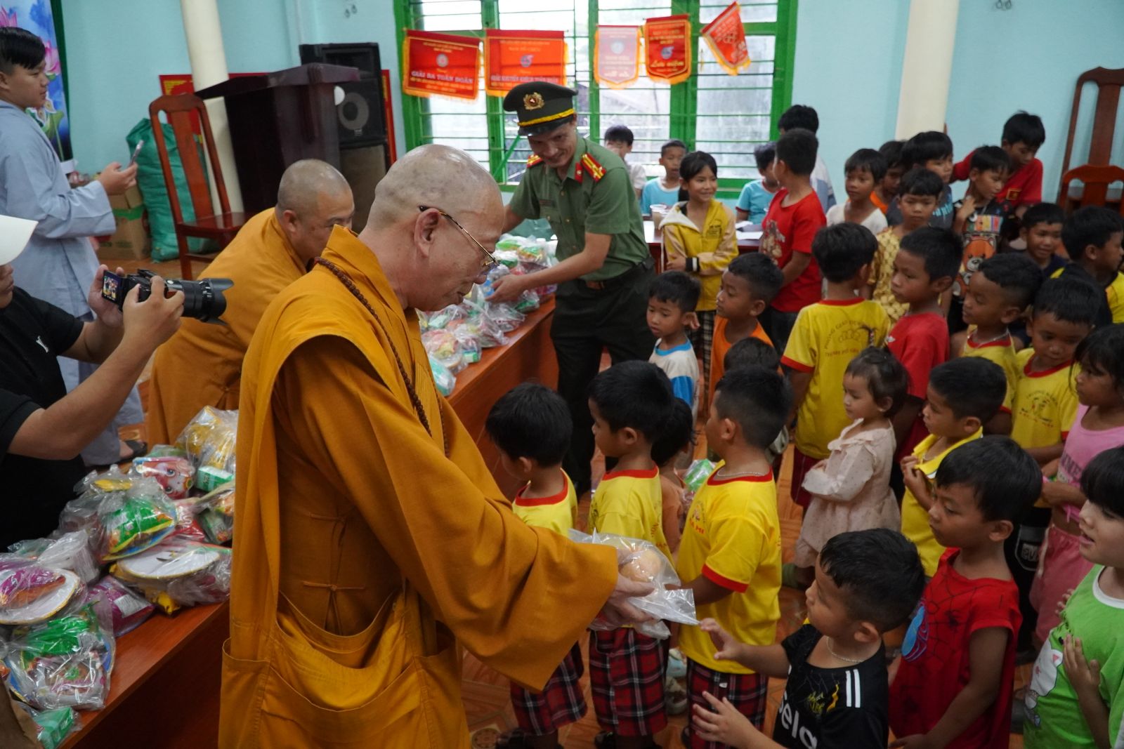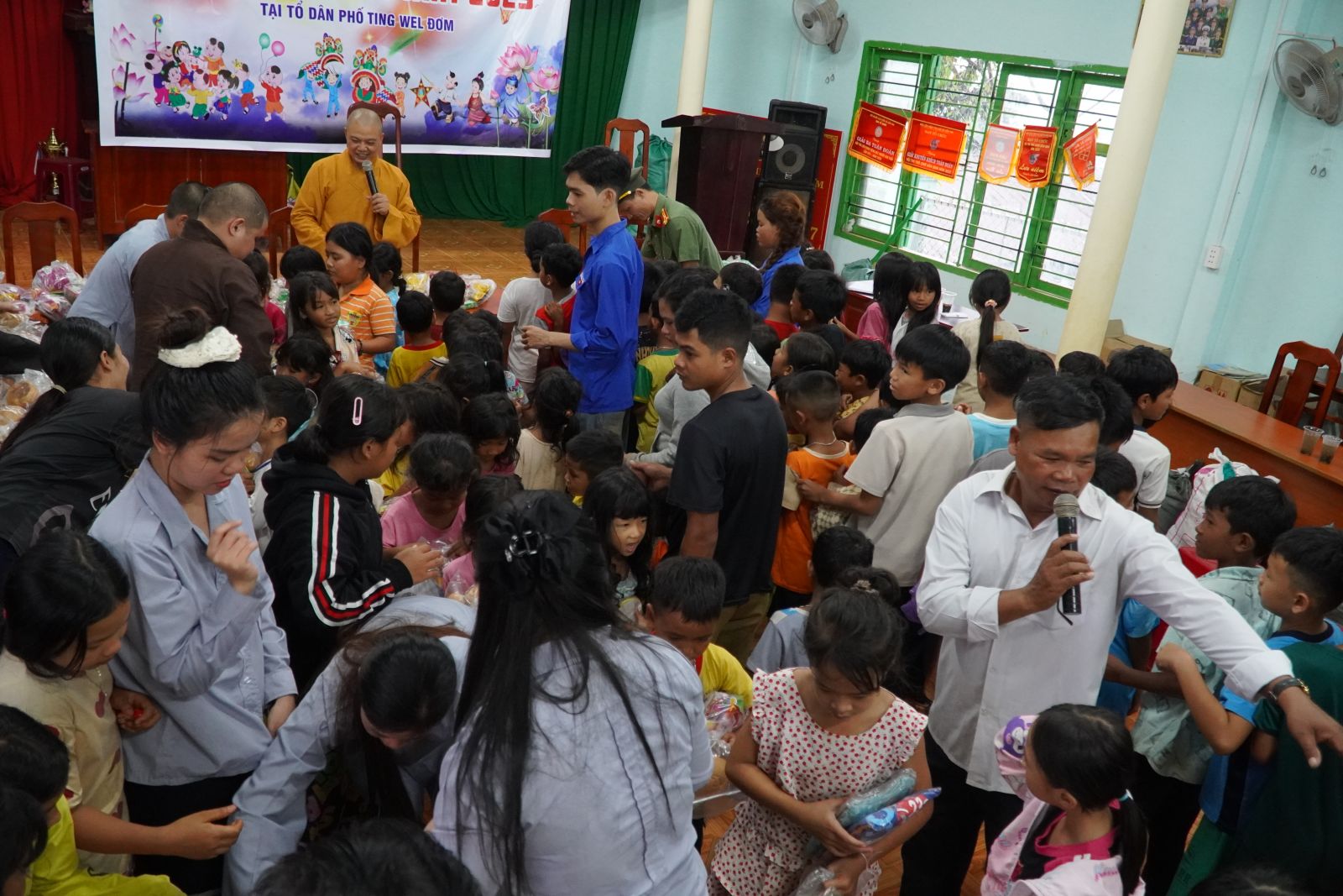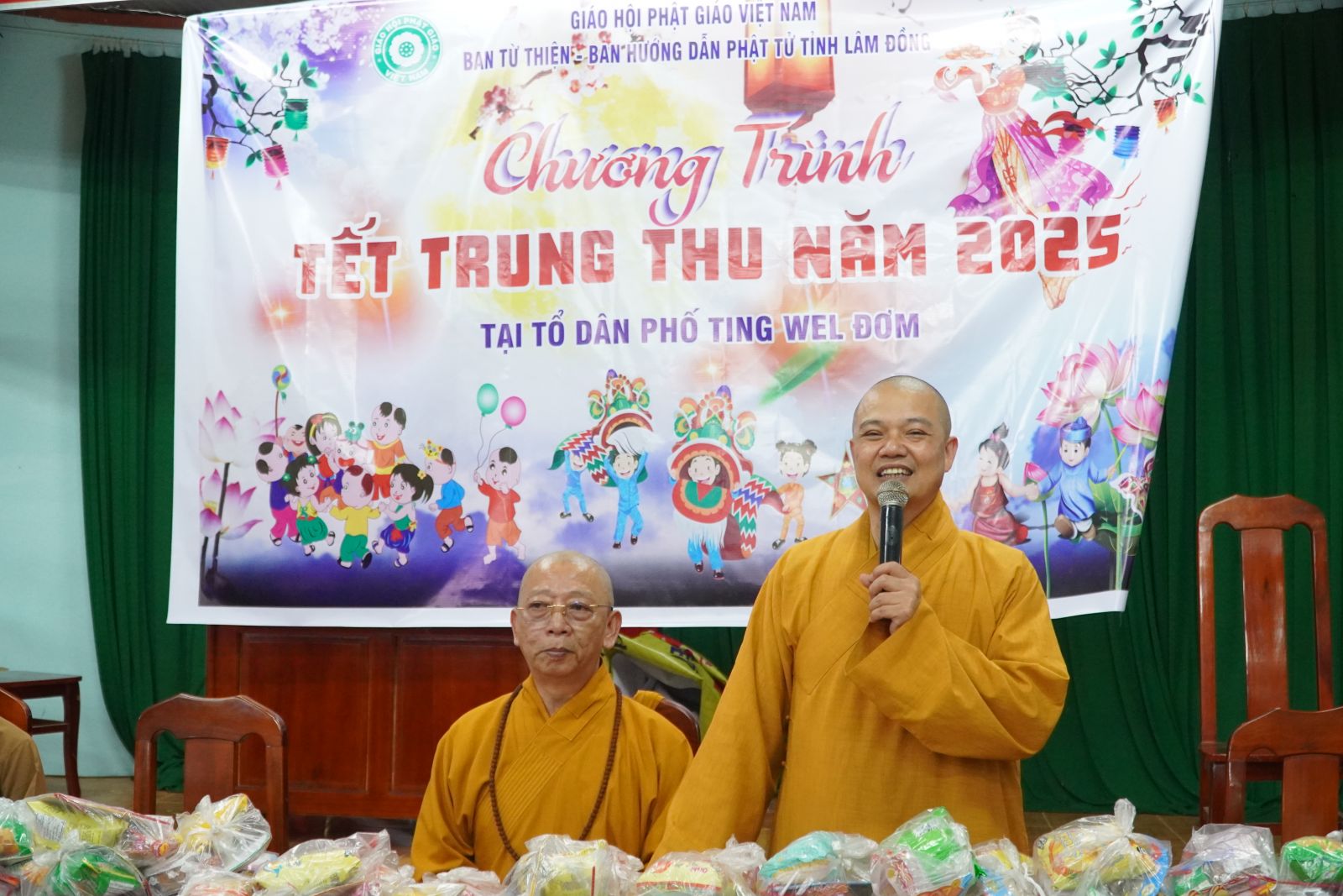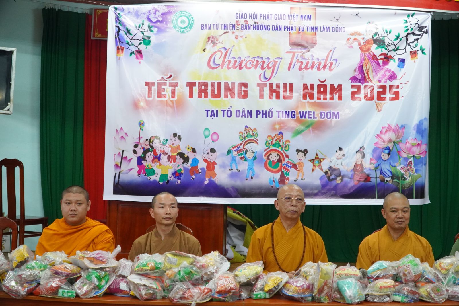 Ngay sau buổi lễ trao học bổng, Ban Hướng dẫn Phật tử tỉnh Lâm Đồng đã tổ chức buổi trao quà Trung Thu cho các em thiếu nhi đồng bào thiểu số. Hơn 200 phần quà đã được trao tận tay các em trong không khí vui tươi, ấm áp, tràn đầy đạo vị.